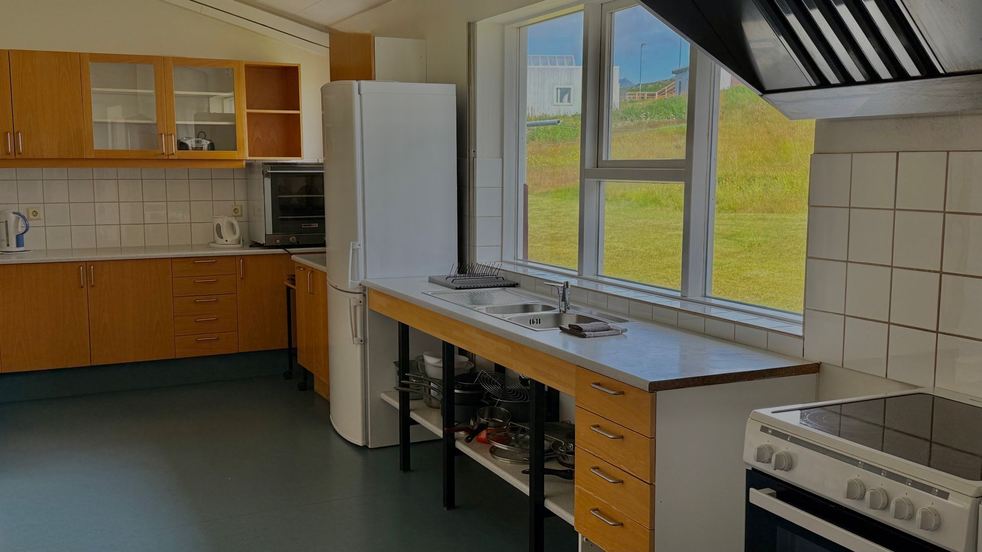 Aðstaðan felur í sér fullbúið sameiginlegt eldhús, rúmgott opið stofusvæði og frítt Wi-Fi.
